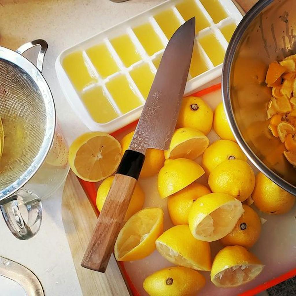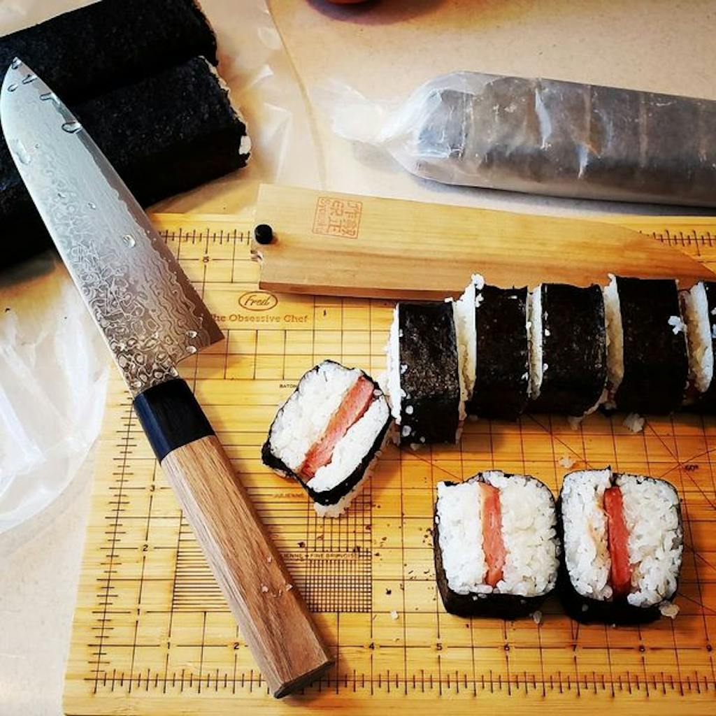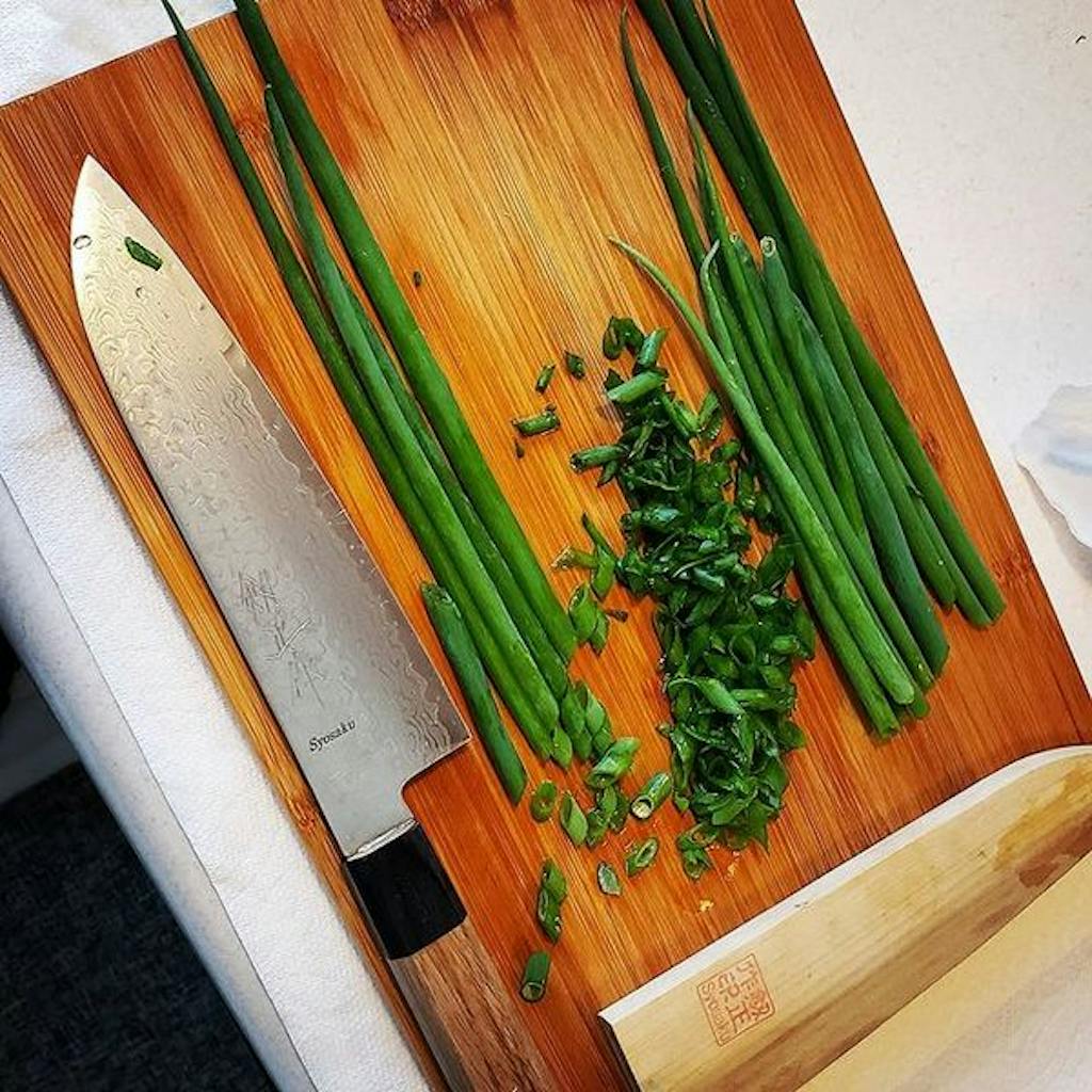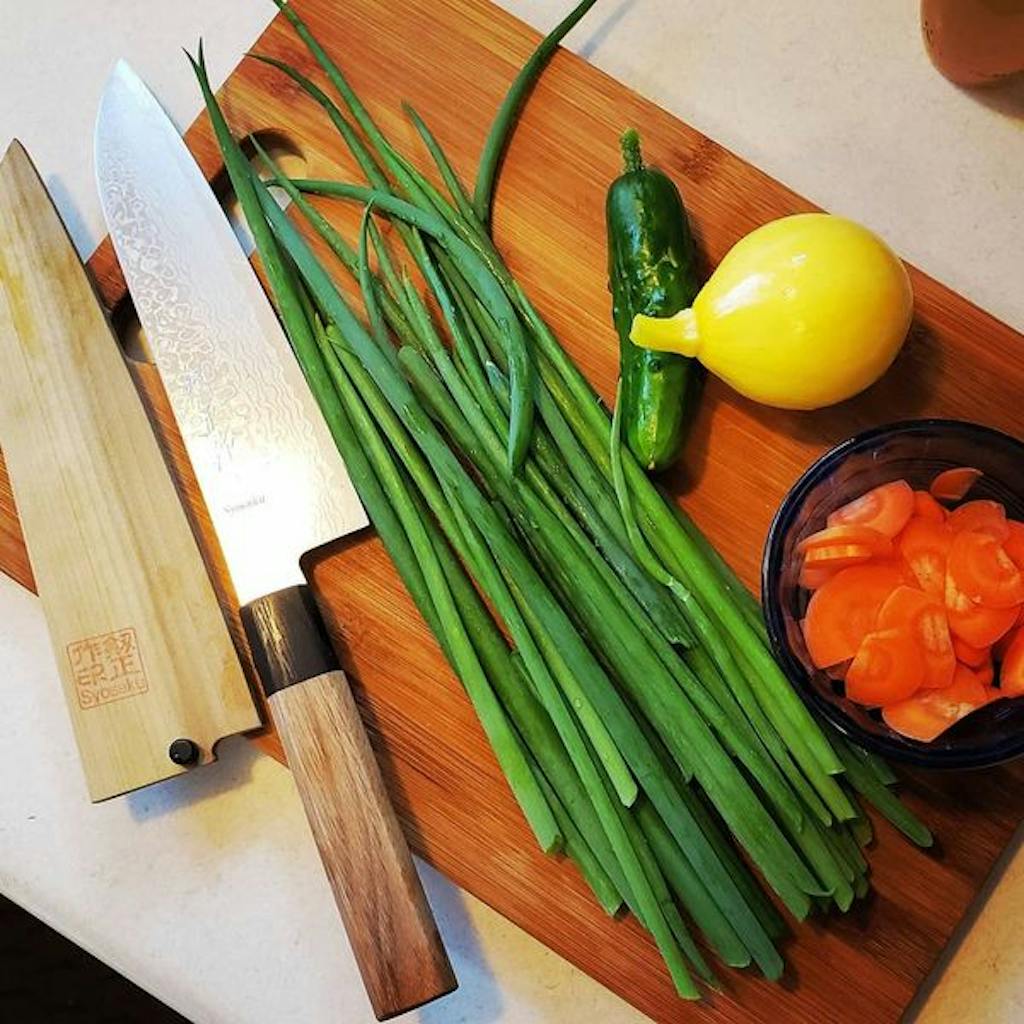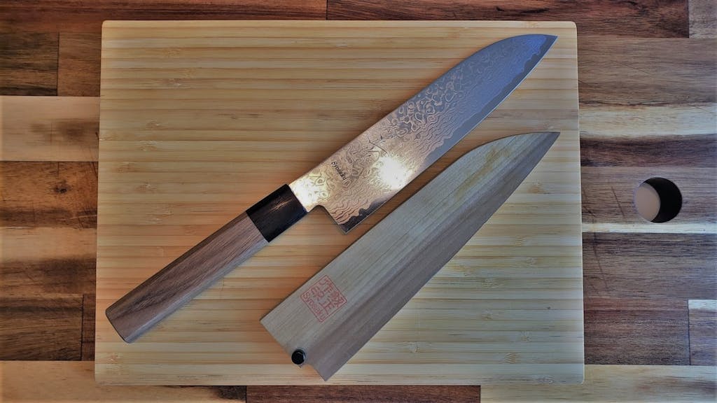 "I’m using a Syosaku Damascus Santoku knife 180mm.